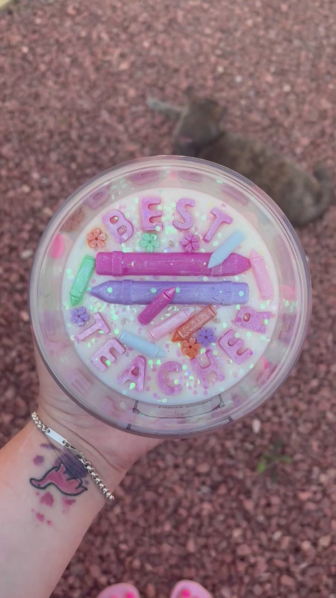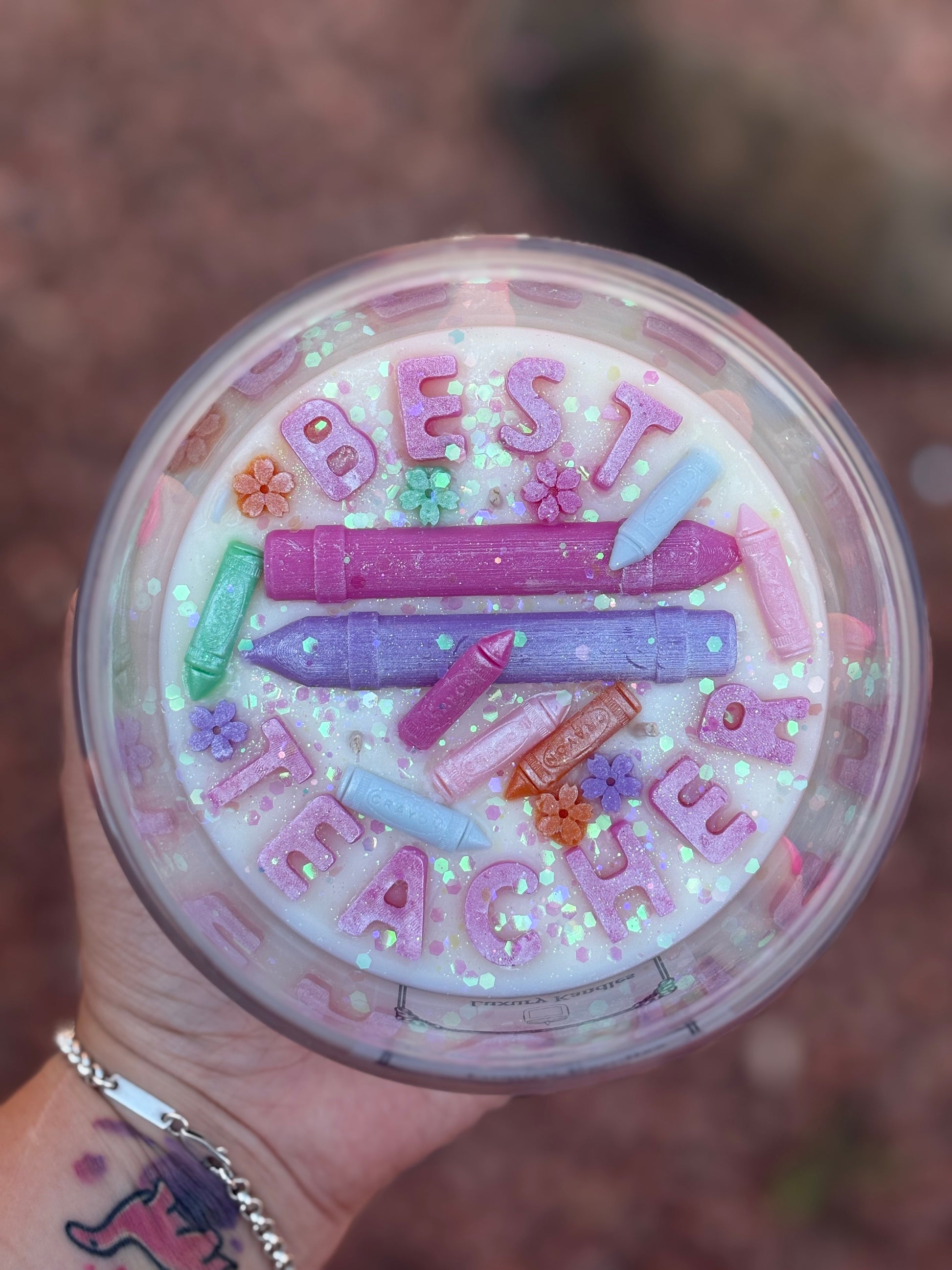 The perfect gift to say thank you to your child's teacher (or your own!). My beautiful Best Teacher Kandle is in my large jar which holds approximately 300ML of hand poured Wax.