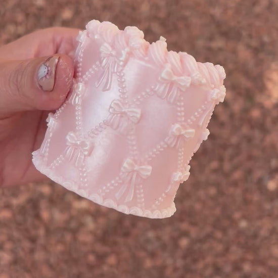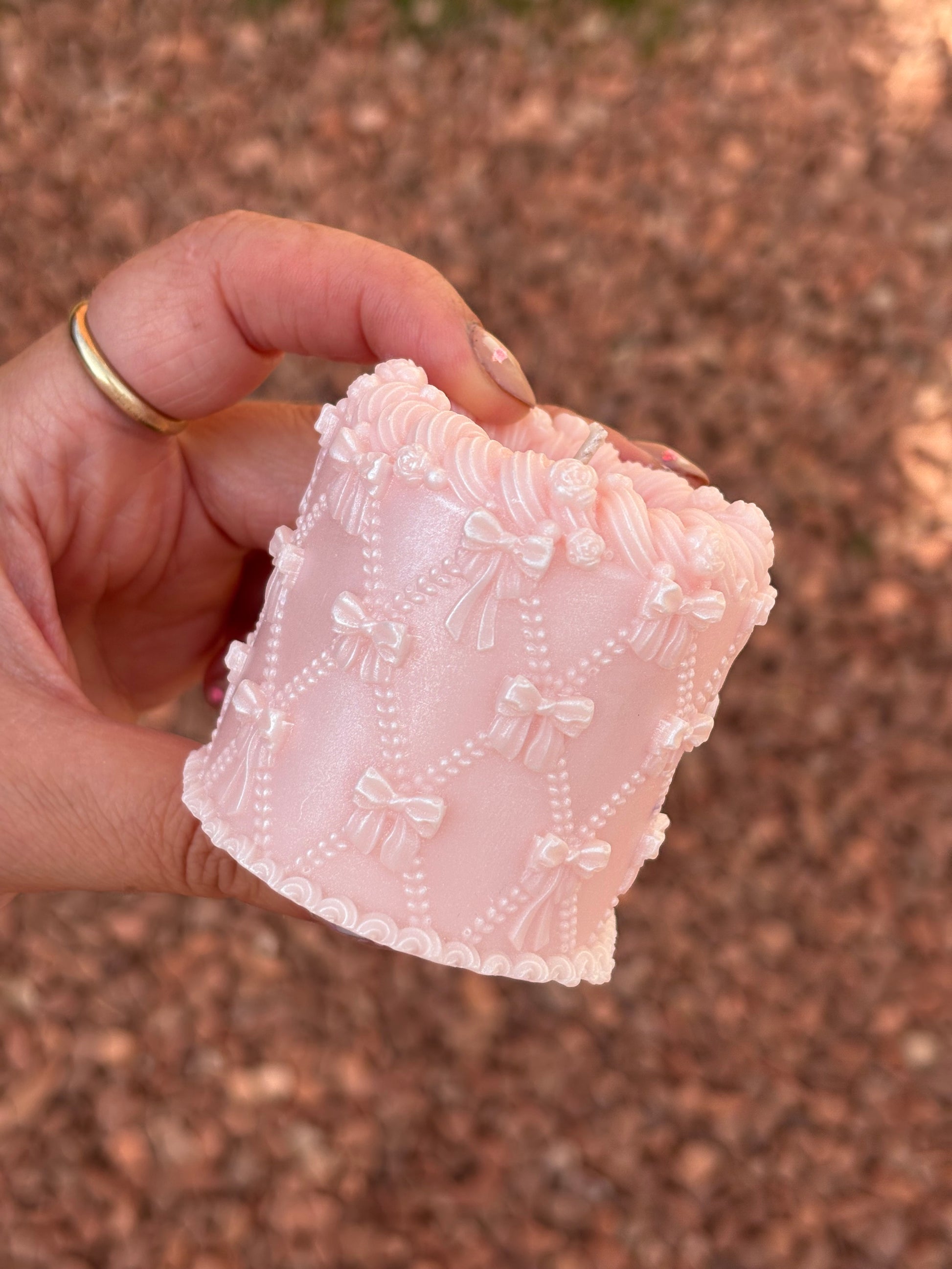Pillar candles can be a beautiful addition to your home decor, with a gorgeous scent throw. This gorgeous bow candle is made up of approximately 150ML of hand poured wax and has an approximate burn time of 5 hours. This candle is the perfect wedding gift! Please ensure that you follow strict safety instructions when lighting your pillar candle.