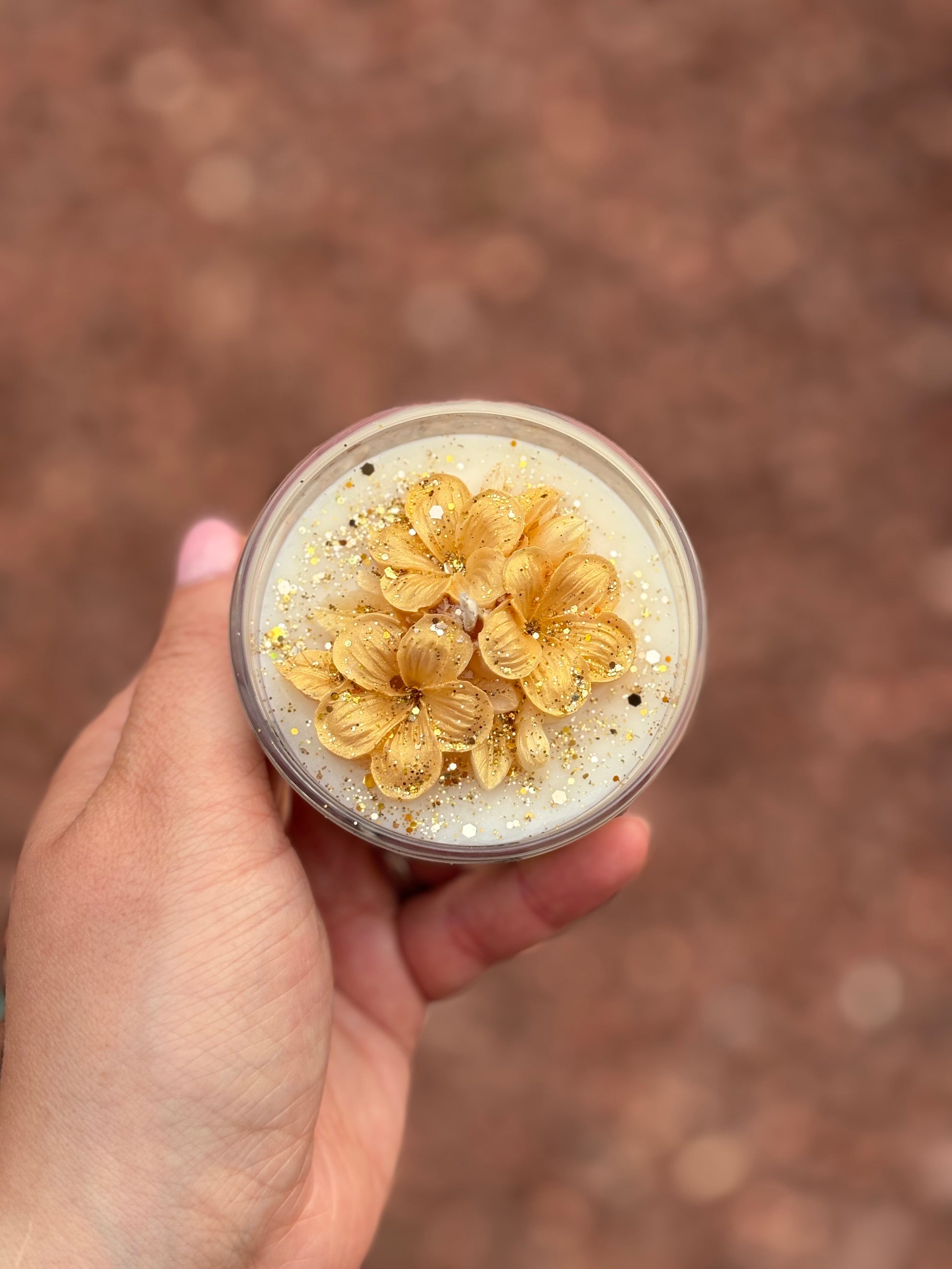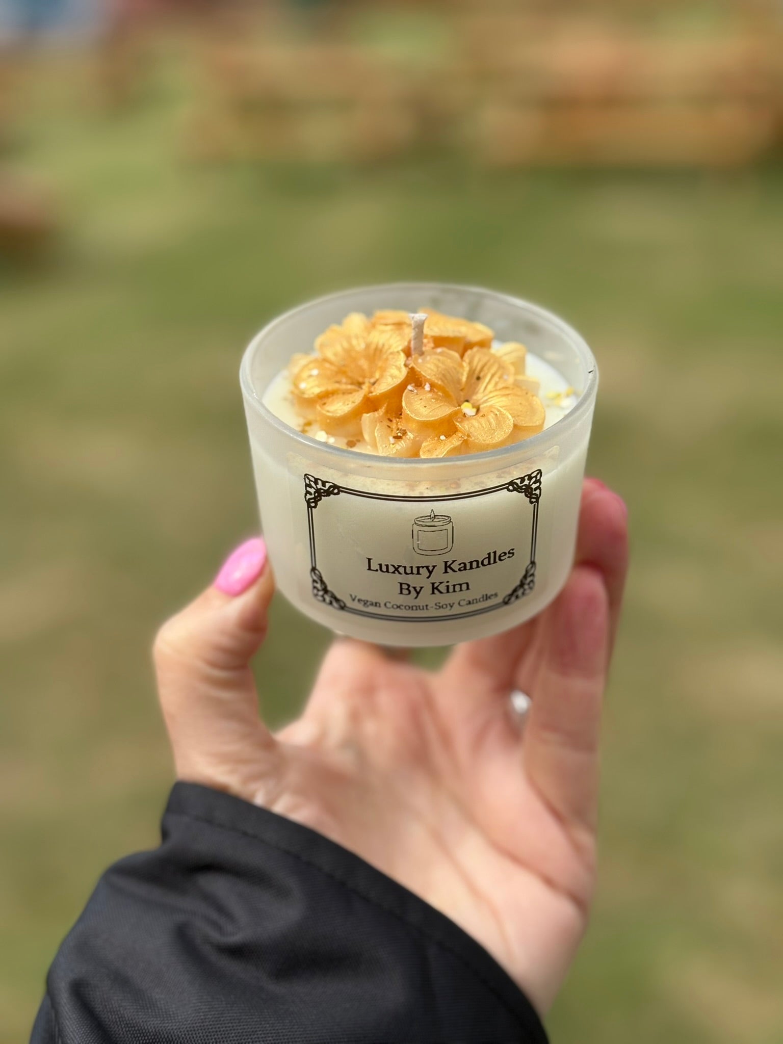 My beautiful floral Kandle is a must-have for any season.. In my miniature jar which holds approximately 100ML of wax.