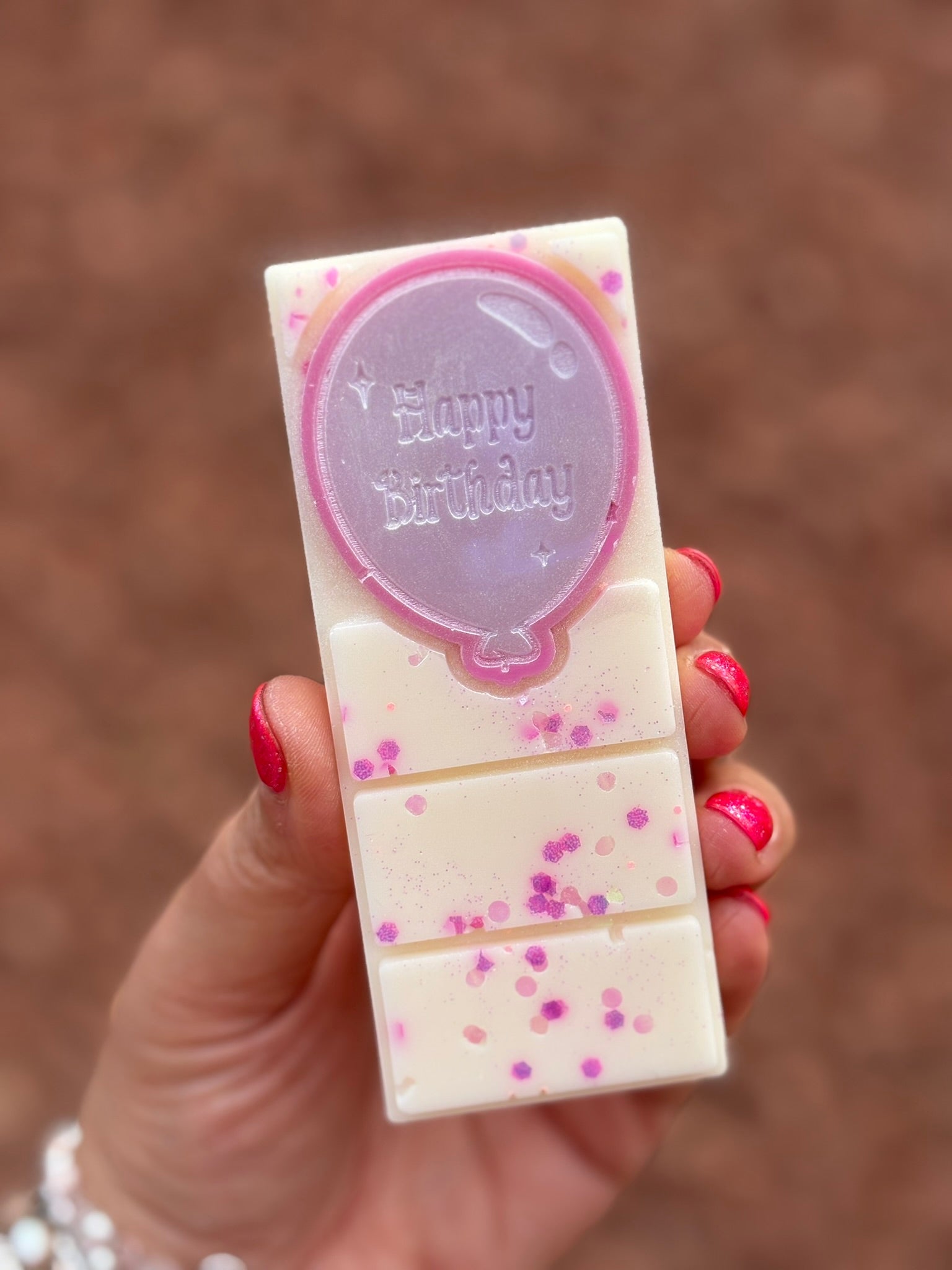 Celebrate with this delightful Happy Birthday wax melt slab, weighing around 50 grams of pure scent-filled joy!