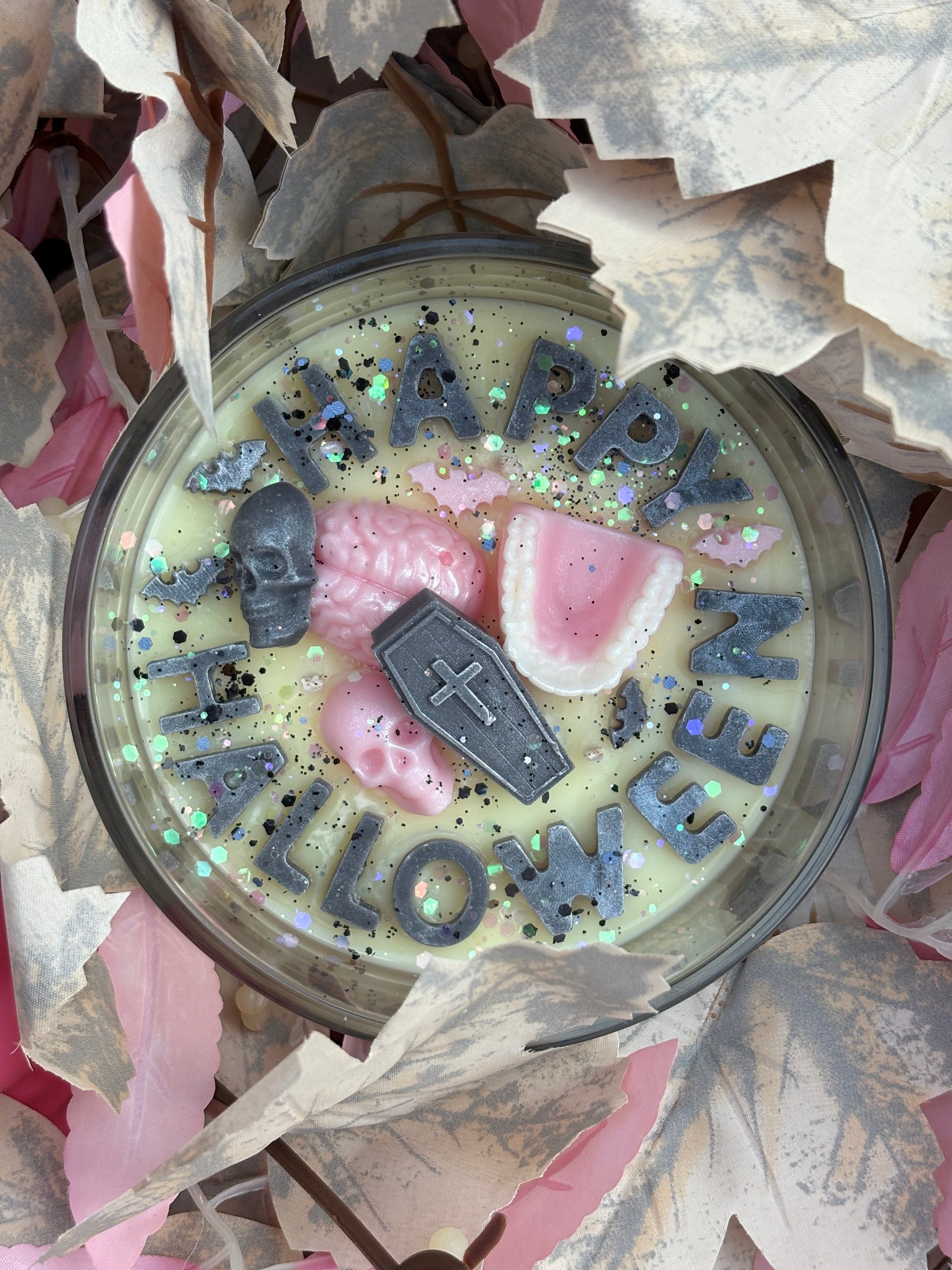 Happy Halloween! Be the talk of the town with my gorgeous spooky Kandle! This design is in my large jar which features 300ML of hand poured wax. If you require this design in a different jar size, please contact me before purchasing.