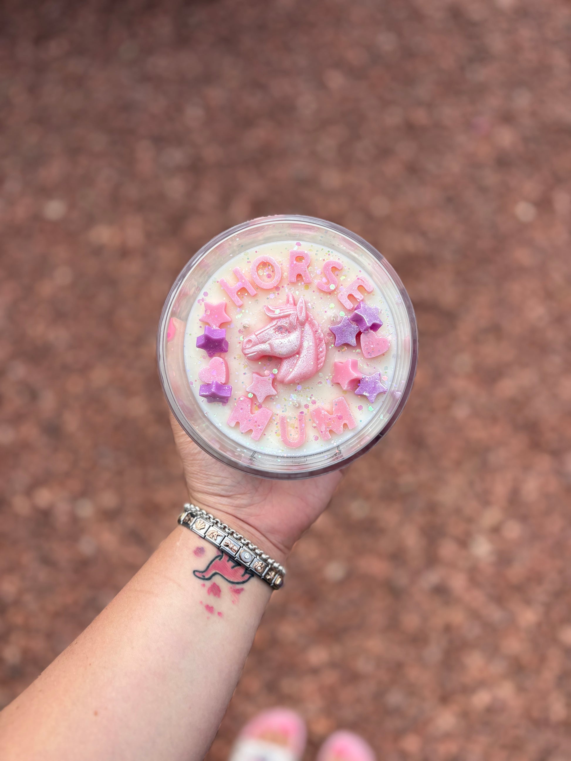 Attention horse mums! This lovely candle is just for you—a one-of-a-kind, beautiful gift for every horse fan. In my large jar which holds approximately 300ML of hand poured wax.