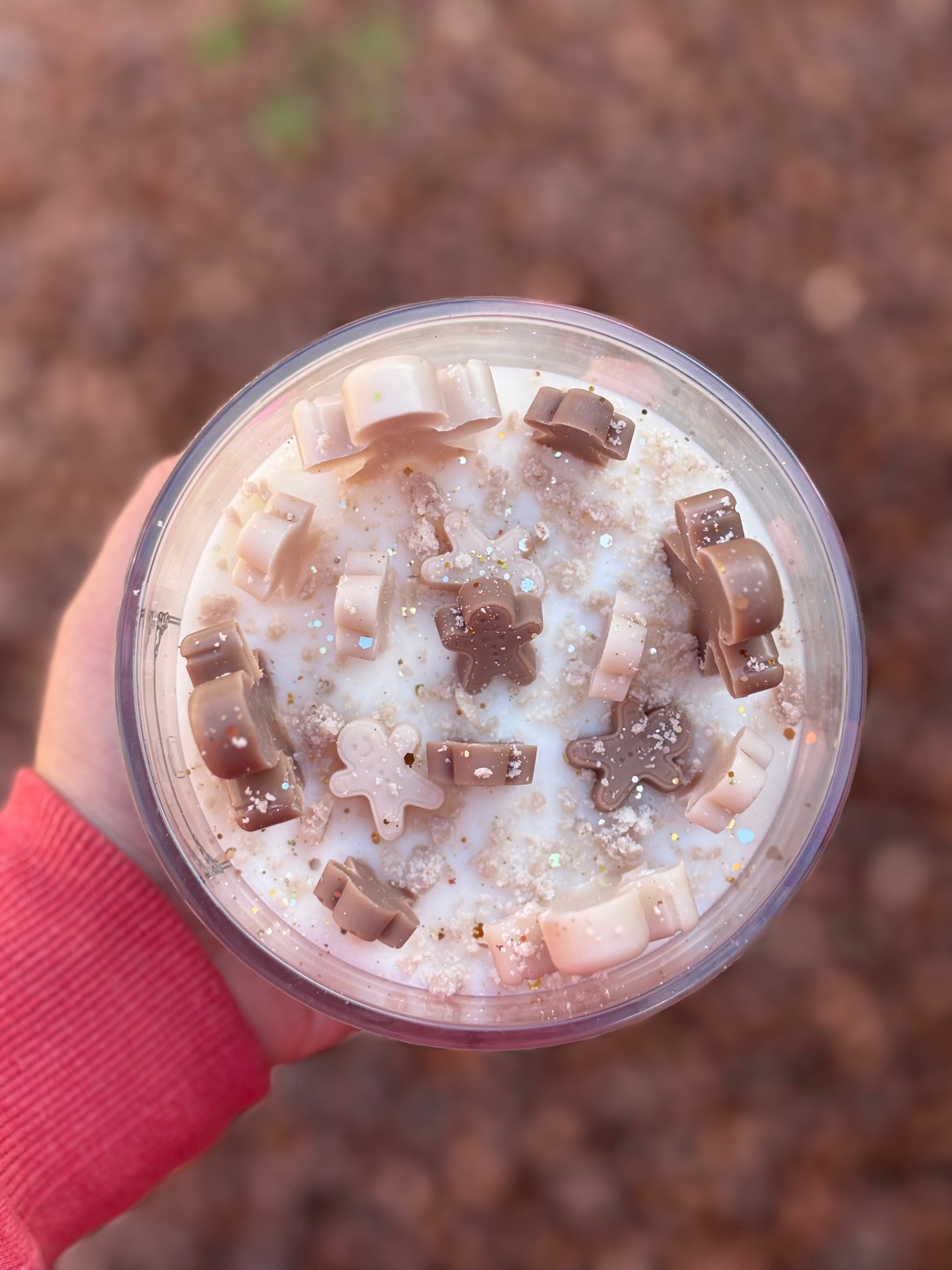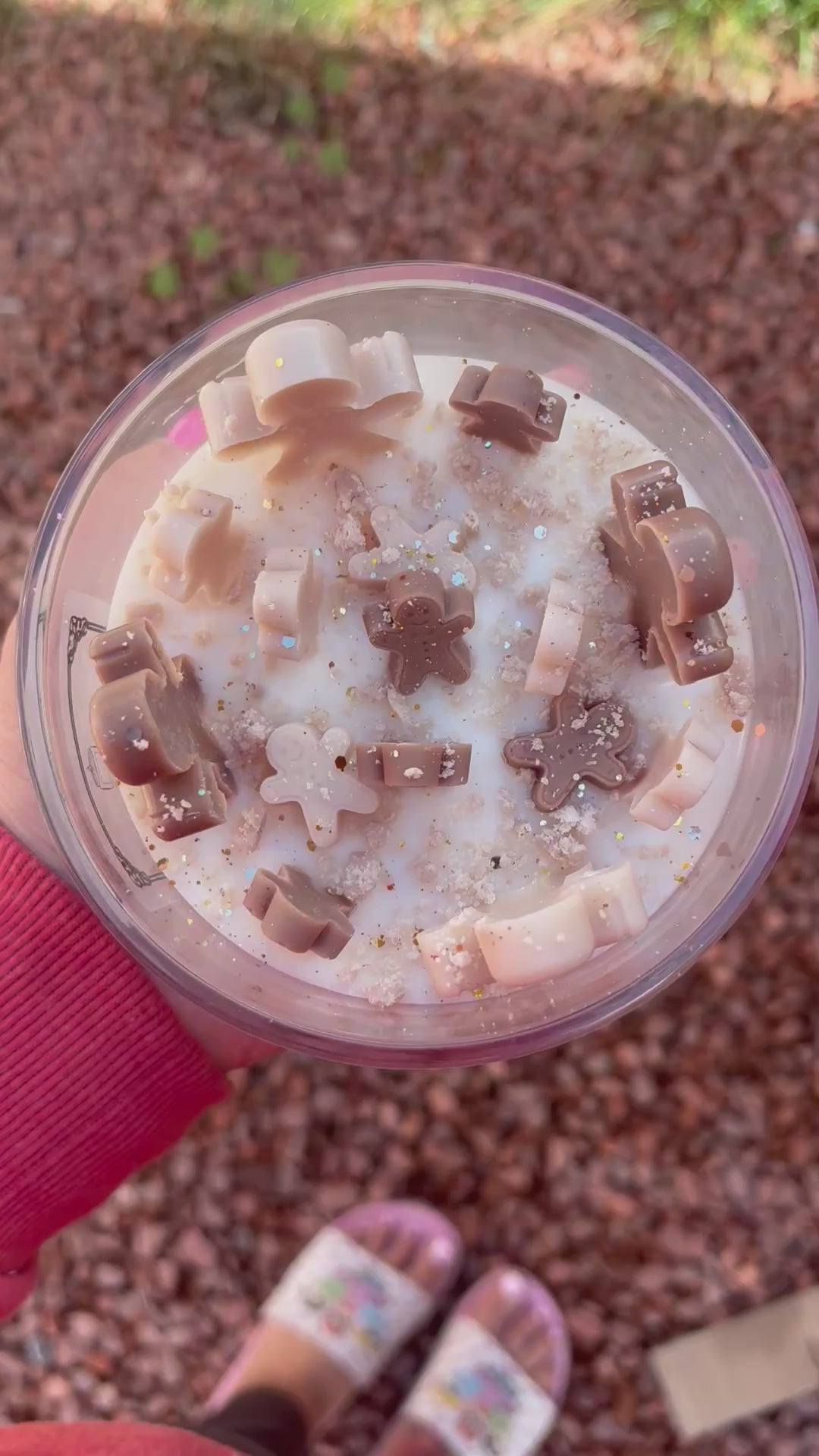 Beautiful Gingerbread party in my large jar containing approximately 300ML of hand poured wax.