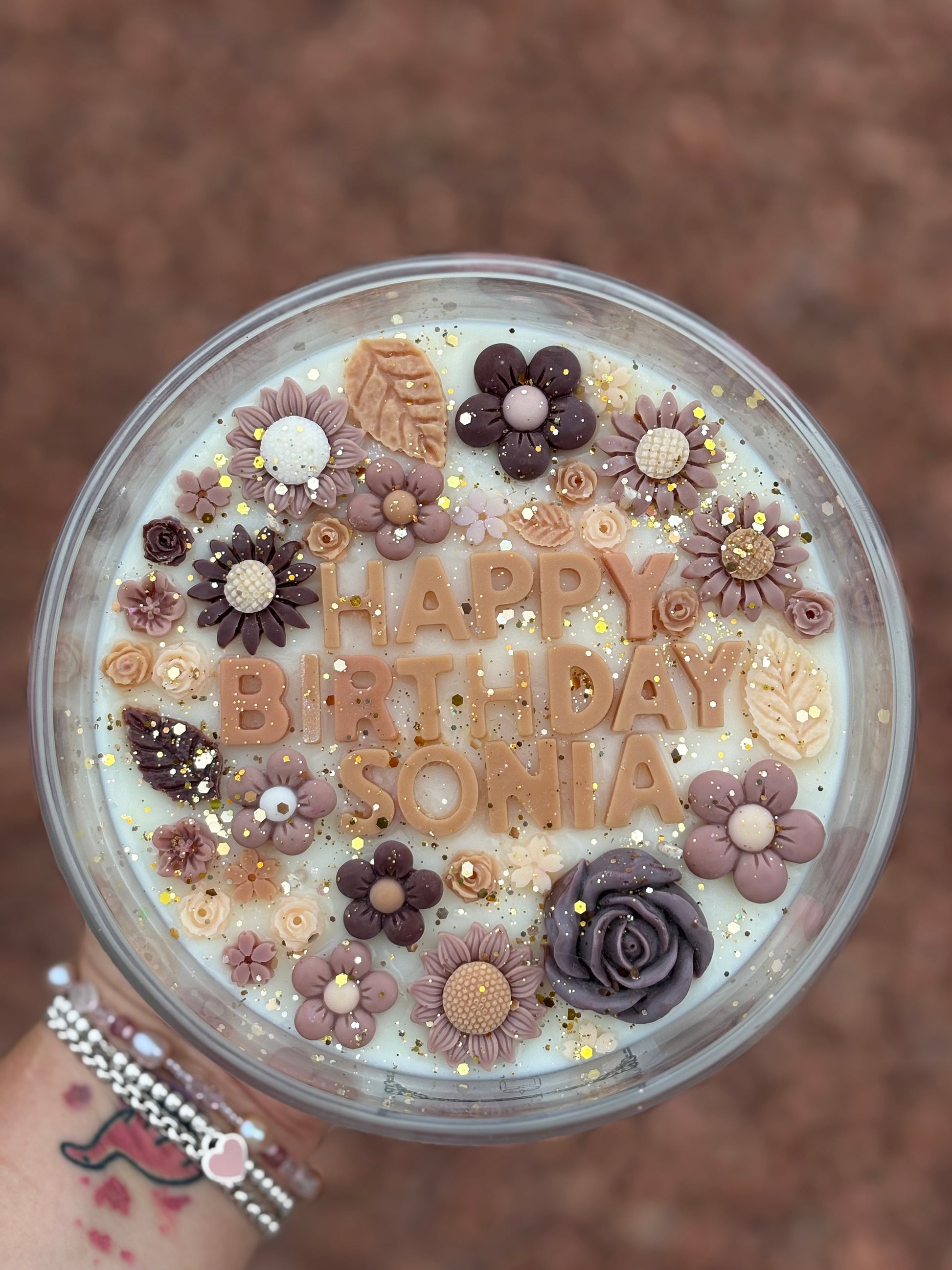This personalised name Kandle is the ideal eco-friendly gift. Upon purchase, I will reach out to you to discuss the scent, colour, and design choices. This delightful candle arrives in my new, bigger jar topped with a gorgeous black lid and filled with about 600ML of lovingly hand-poured wax.