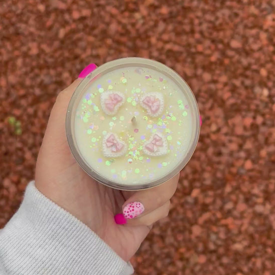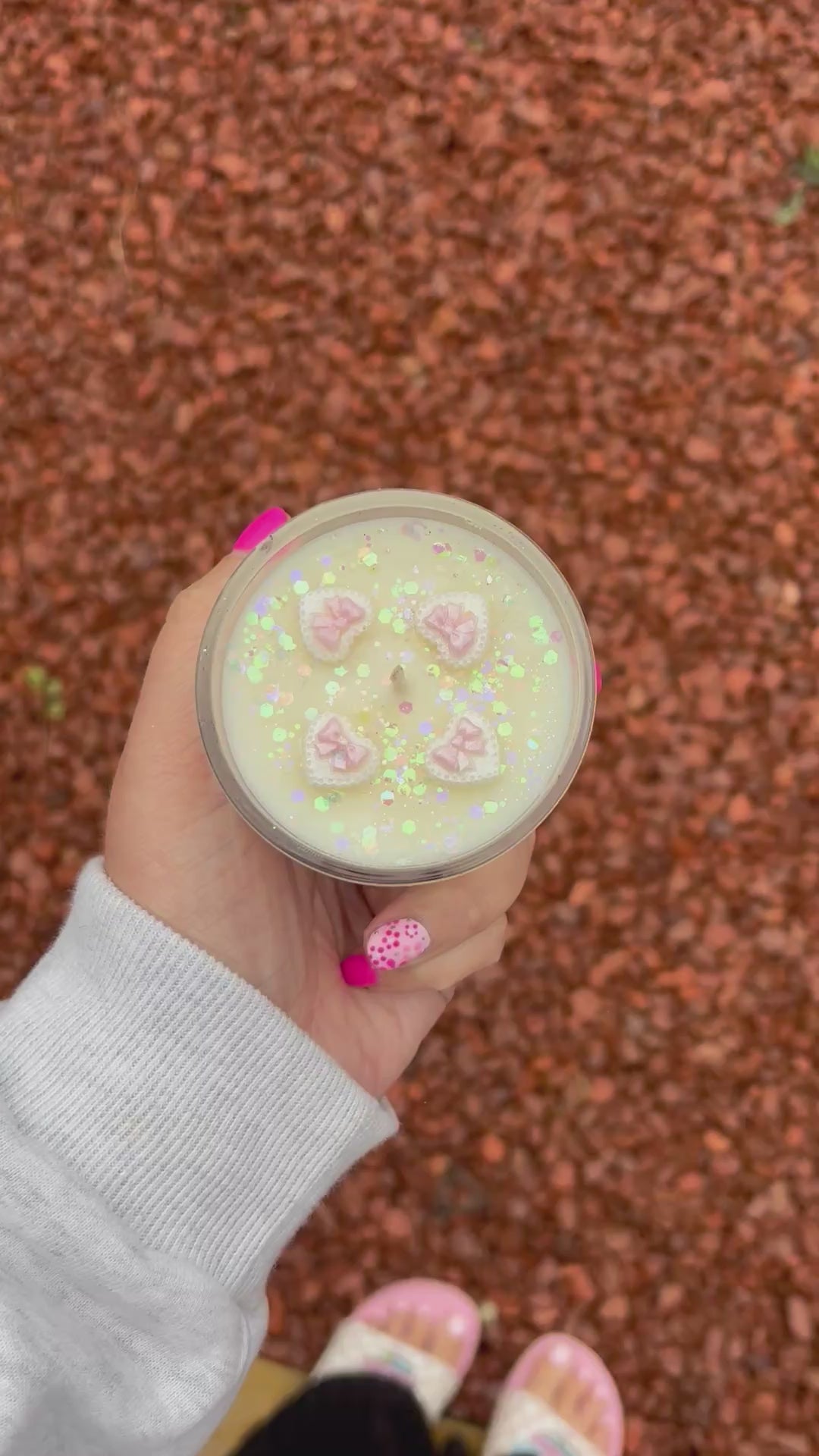 These gorgeous bows make a Kandle fit for a princess.. In my miniature jar which holds approximately 100ML of wax. If you’d like this design in a different sized jar, please message me.