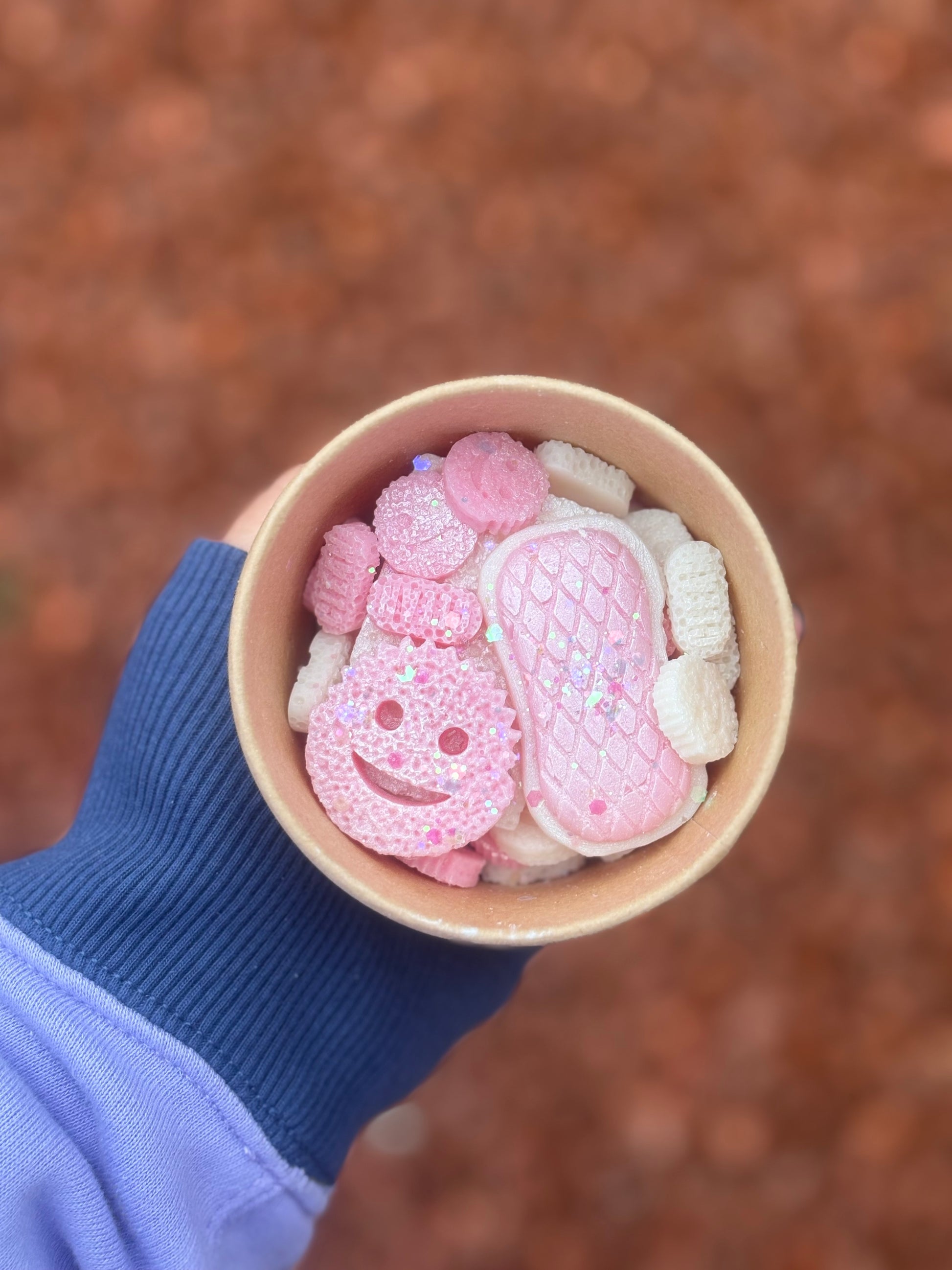 random mix of cleaning shaped wax melts are adorable - ready made in the colour pink and white - giving you approximately 80 grams of wax